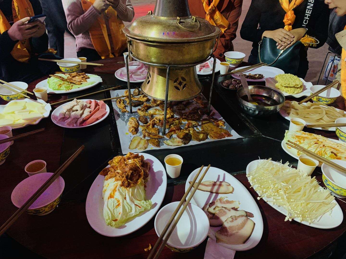 品嘗當?shù)氐牟厥酵粱疱仭⒁贿呌^看歌舞表演、體驗篝火晚會。