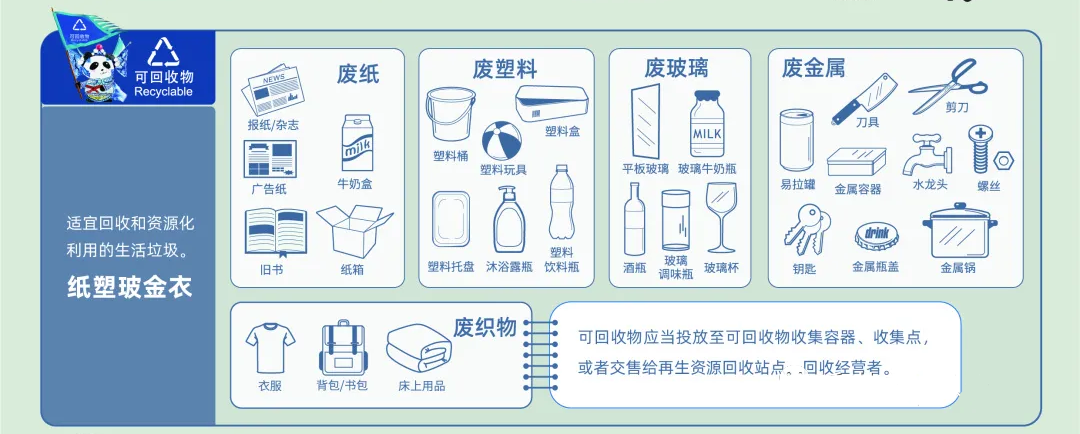 可回收物,是適宜回收、可循環(huán)利用的生活廢棄物。