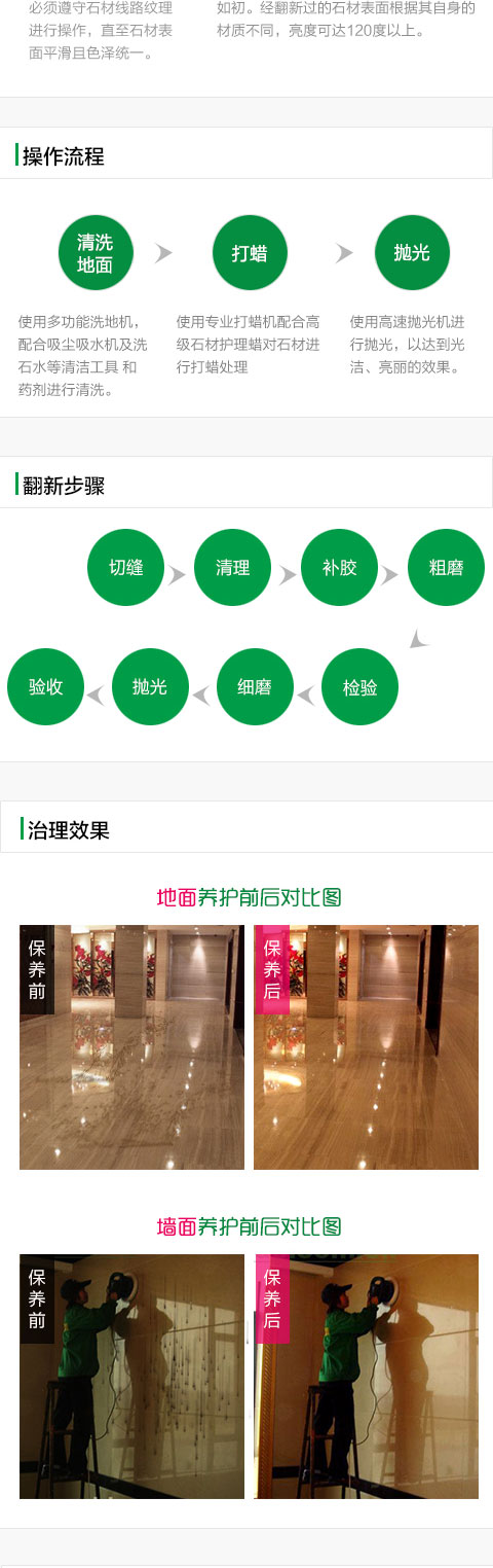 保潔三遍(保養(yǎng)前兩遍,保養(yǎng)后一遍),直至無凸起性污垢、無浮塵;地面以上25cm范圍內(nèi)物品保潔。